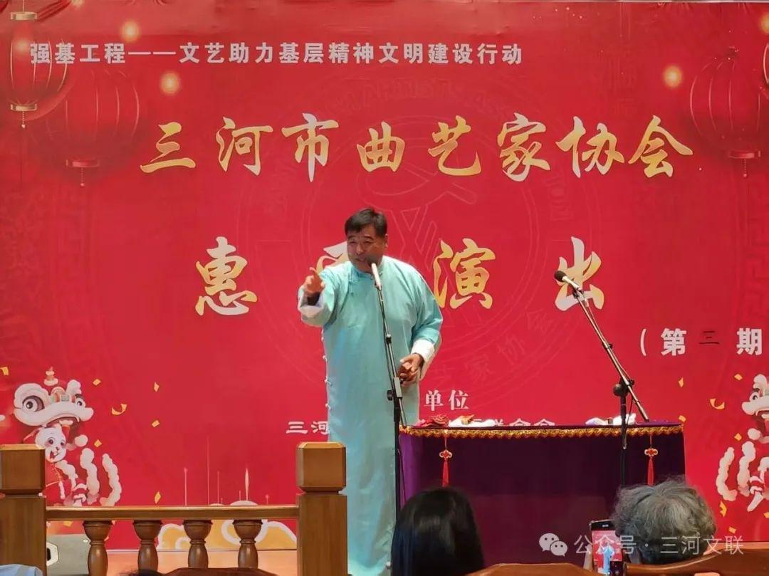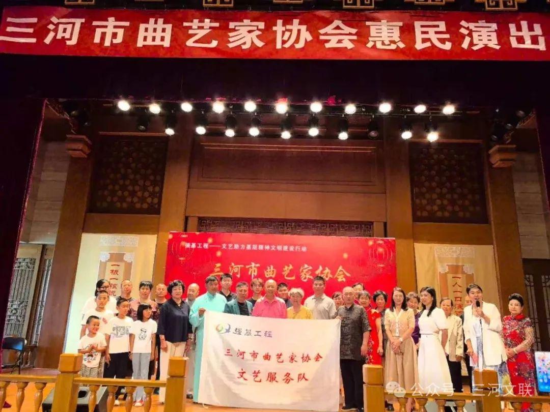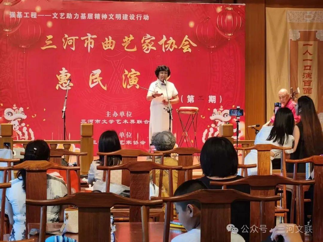 6月15日,“强基工程 —— 文艺助力基层精神文明建设行动” 三河市曲艺家协会惠民演出在文化中心戏楼热闹开演。本次活动由三河市文联主办、三河市曲艺家协会承办,为市民送上精彩曲艺盛宴 。
