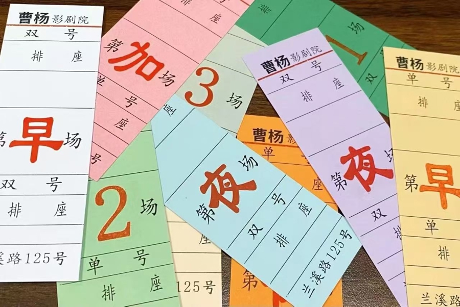 7.曹杨影城复古票根:“曹杨影剧院,双号。”沪上老牌电影院曹杨影城推出的复古电影票根在社交平台出圈,朴实无华的票根设计源于50多年前的老电影票,浓郁情怀将影迷一秒带回老上海。与此同时,影院内还陈列了不少电影老海报,是谁的童年记忆苏醒了?